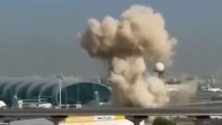Des images montrent l’explosion survenue à proximité de Dubai International Airport, l’un des hubs aériens les plus fréquentés du monde. Les autorités avaient initialement suspendu toutes les opérations pour des raisons de sécurité, provoquant des perturbations importantes dans le trafic aérien international.