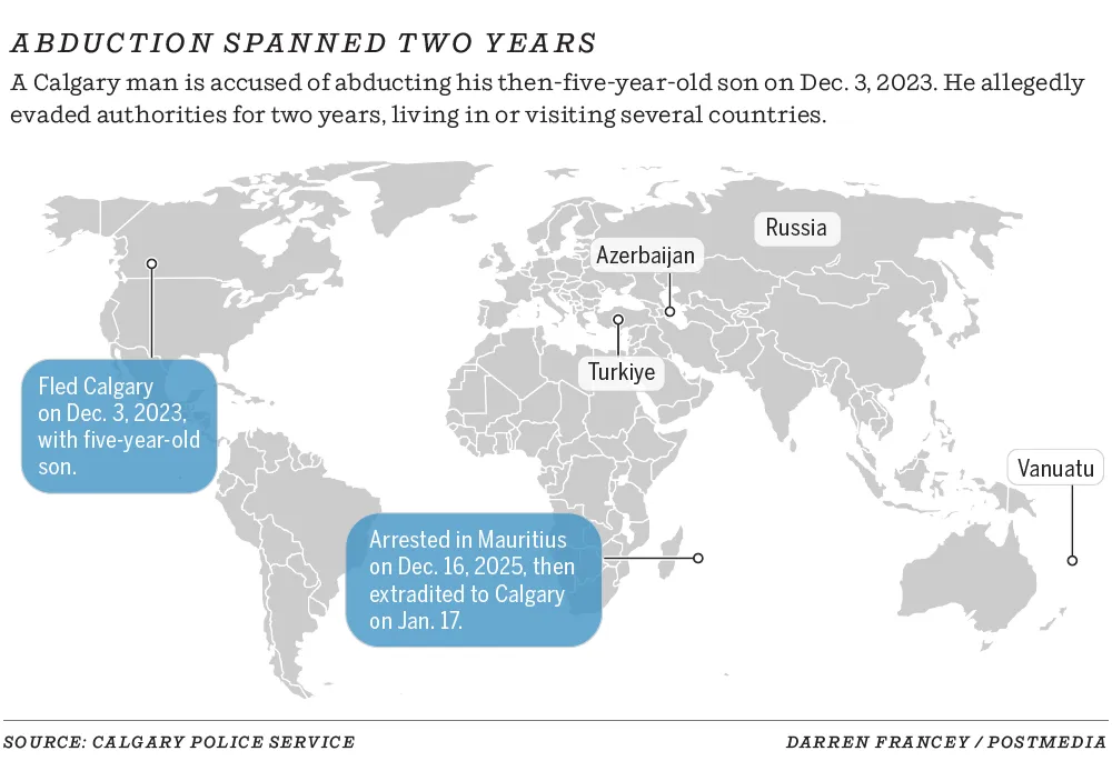 Pendant plus de deux ans, la police de Calgary, la Gendarmerie royale du Canada, Affaires mondiales Canada et Interpol ont coordonné leurs efforts. L’alerte internationale lancée par Interpol a finalement permis de localiser Rahman et son fils à l’aéroport international Sir Seewoosagur Ramgoolam, le 16 décembre 2025. Il a été immédiatement arrêté par les autorités mauriciennes.
