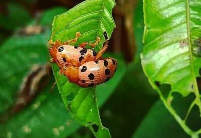 L’insecte dont il est question serait le « Hog Plum Beetle », connu scientifiquement sous le nom de Podontia quatuordecimpunctata. Il s’agit d’un coléoptère ravageur originaire d’Asie du Sud-Est. Ce petit insecte, reconnaissable à son dos noir parsemé de taches claires, souvent quatorze points, se nourrit des feuilles des pruniers de Cythère (Spondias dulcis).